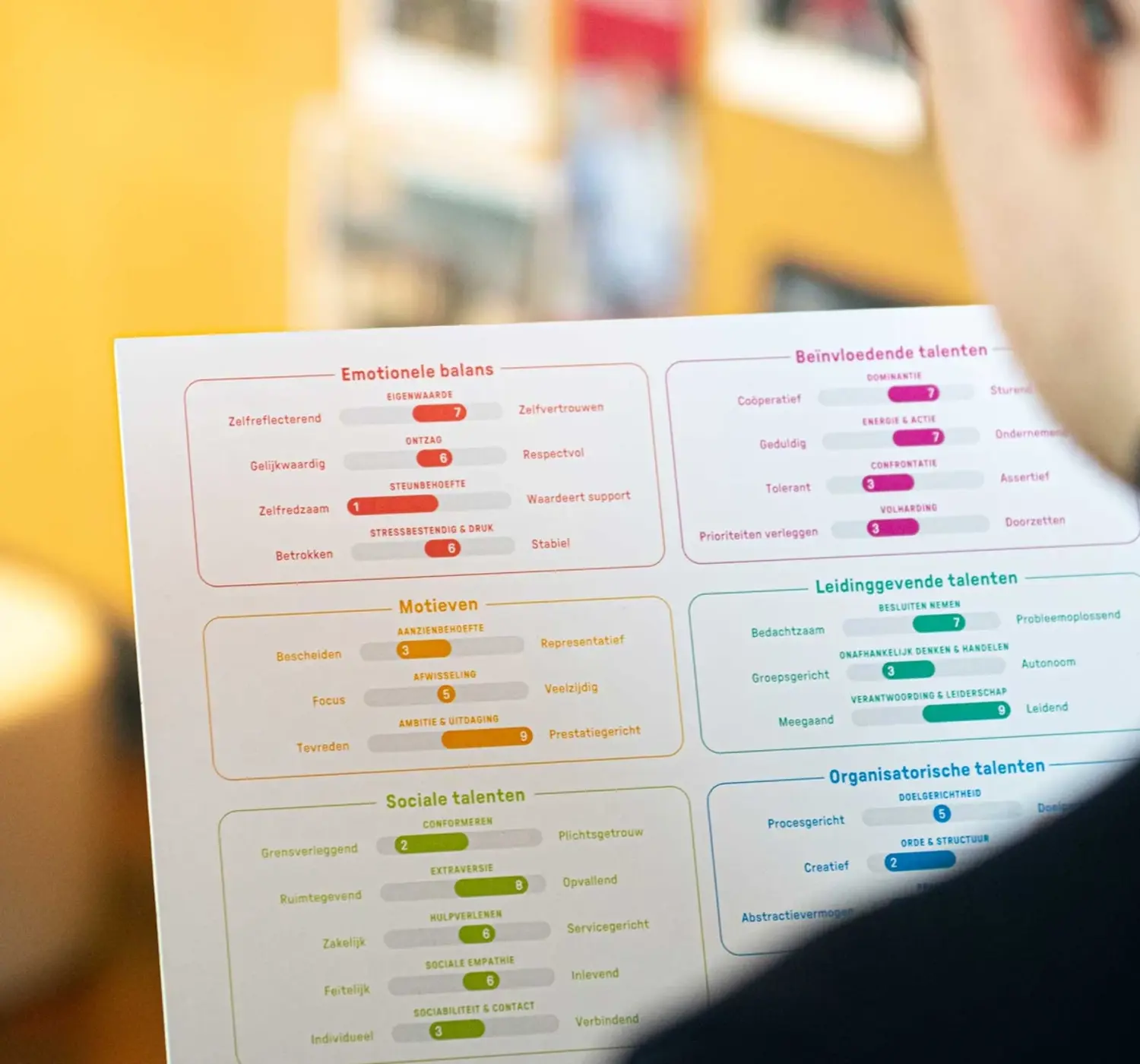 De talentanalyse van TMA begint met het invullen van een online vragenlijst. Deze vragenlijst meet verschillende aspecten van iemands talenten, waaronder persoonlijkheid, motivaties en drijfveren. Na het invullen van de vragenlijst ontvang je een uitgebreide rapportage die laat zien welke competenties makkelijk en moelijk ontwikkelbaar zijn op basis van je unieke talenten en drijfveren. Hiermee kun je vervolgens aan de slag in een persoonlijk ontwikkelingsplan. Allemaal vanuit het idee: doe meer van waar je energie van krijgt en juist minder waar je geen energie van krijgt.